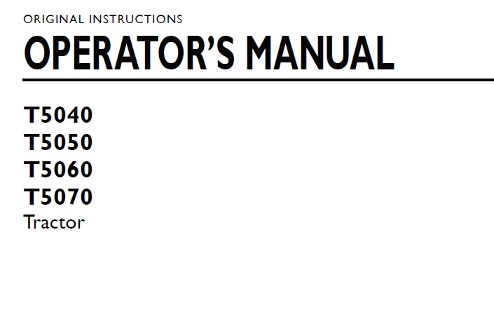 This operator’s manual is for New Holland T5040 , T5050 , T5060 , T5070 Tractor. Contains the operation, adjustment and maintenance information of your machine. You have purchased a dependable machine, but only by proper care and operation can you expect to receive the performance and long service built into this tractor. Please have all operators read this manual carefully and keep it available for ready reference. This Use and Maintenance Manual provides a guide for the user with regard to running-in, use and maintenance of the tractor.